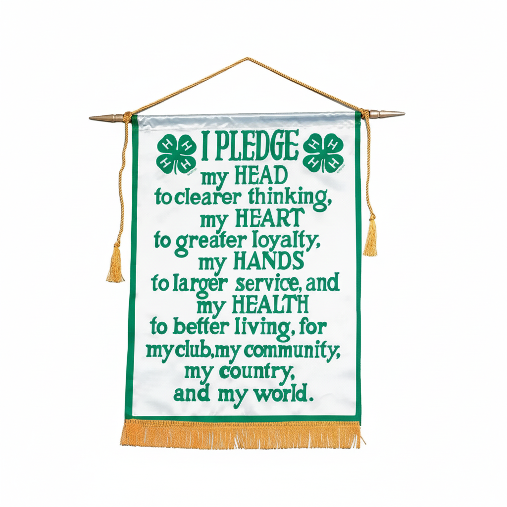 The 4-H Pledge is a commitment to the four core values represented by the organization's name: Head, Heart, Hands, and Health. Members pledge their Head to clearer thinking, emphasizing critical thinking, problem-solving, and the use of knowledge throughout life. They pledge their Heart to greater loyalty, focusing on developing strong character, positive self-concept, and compassion for others. The pledge of Hands to larger service encourages a commitment to giving back through community service, developing useful skills, and working toward a more inclusive world. Finally, Health to better living signifies the importance of physical and mental well-being, promoting healthy lifestyles, and making responsible choices. By making this pledge, 4-H members commit to using these personal strengths to make a positive difference, starting with their club, their community, their country, and their world.
